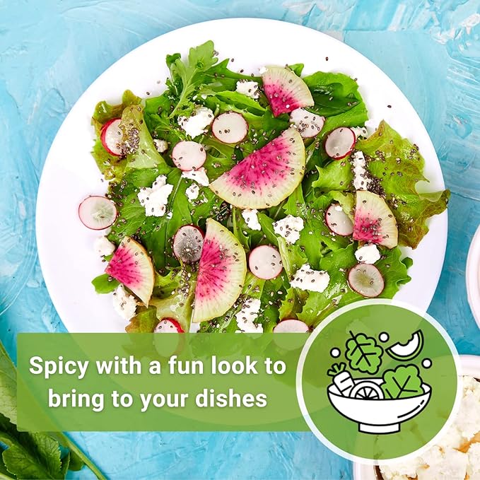 - Beautiful - Large premium packet of Watermelon Rose Radish (Raphanus Sativus) seeds. Heirloom Daikon radish from China with a white exterior. When sliced, this radish looks like a small slice of watermelon, with a green and white edge surrounding a rosy center. Its spicy flavor adds a kick to salads and salsas. Sauteed or roasted, the radish flavor is significantly more mellow. Minimum of 3g (about 280 seeds).