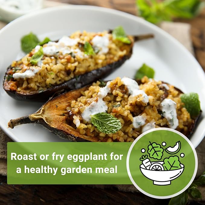 Sow Right Seeds - Black Beauty Eggplant Seed for Planting - Non-GMO Heirloom Packet with Instructions to Plant an Outdoor Home Vegetable Garden - Large Round Fruits, Deep Purple Variety (3)