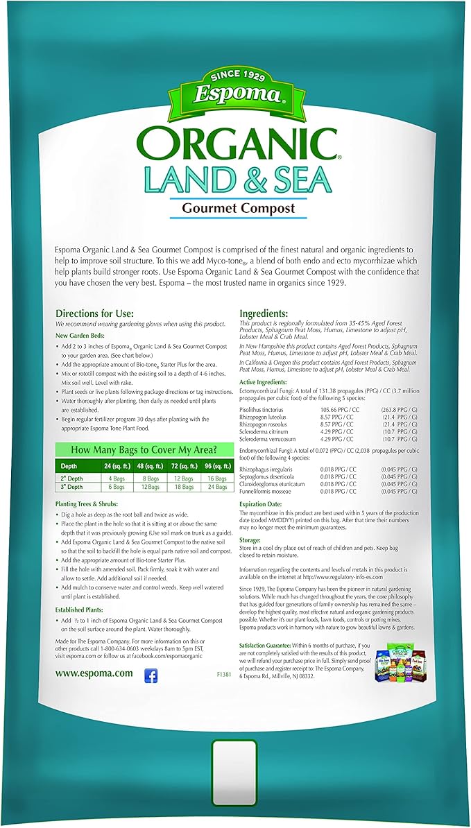 Espoma Organic Land and Sea Gourmet Compost with Lobster & Crab Meal; the Best of Both Worlds! Gourmet Planting Mix for Vegetables, Flowers, Trees & Shrubs. 1 Cubic Foot Bag