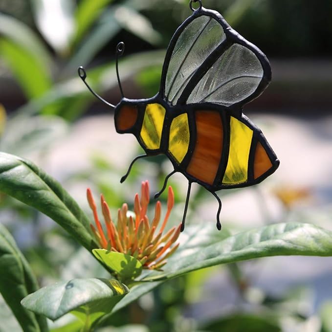 - 【Honey Bee Decorations for Windows】Stained glass bee ornaments is skilled handmade by stained glass sheet. Hand-cut stained glass pieces are soldered together using the copper foil metho