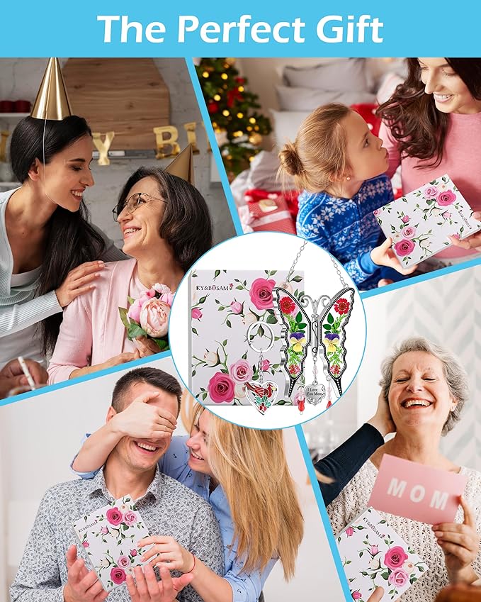 - ✅【 Attractive and Uniquely Designed】:Perfect Gift for Mom grandma nana aunt for birthdays, New butterfly mom Gifts, Grandma gifts,Nana gifts,Gifts for women who have everything,Gifts for Mom, God bless mother in-law gifts,gifts for mom for daughter,As a festival gift or home hangings ornaments decoration on mother’s day, birthdays party, grandma christmas gifts, valentine`s day, halloween party, christmas tree or garden decor and other festivals to your home ,and You will receive a color gift box packing with a new butterfly sun catcher and a complimentary suction cup with hook, the new butterfly suncatcher carries a tag with "I Love You Mom" engraved on it.