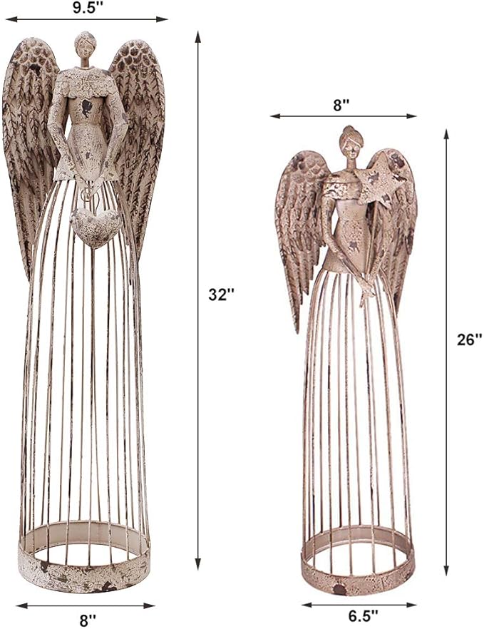 - Metal Garden Angel: The angel sculpture is made of metal, hand-painted in rustic vintage style, Add style to your indoor or outdoor decor with this garden angel statue, perfect in any lawn, garden, or household. Greet your friends and neighbors with this vintage garden angel statue in your garden.