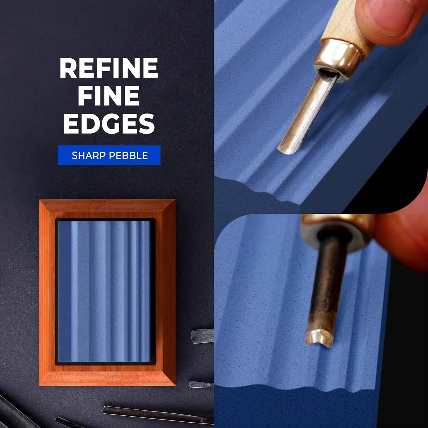 - Innovative Sharpening Stones: Our groundbreaking gouge sharpening stone comes with multiple grooves for sharpening Lathe Tools, Wood Carving Tools, Wood Chisel and Gouges with different contours. No more pain and hassle for trying to sharpen contoured woodworking tools & chisels on a flat whetstone