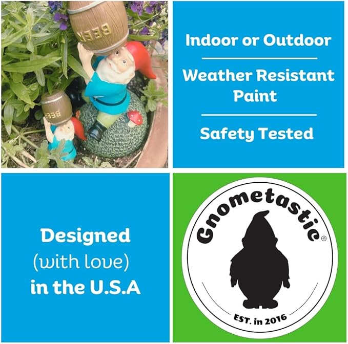 - Safety Tested: Certified Lead Free Paint and Materials. Complies with CA Proposition 65. Gnome sculpture is hand painted with detailed accents | Made in China. Designed in USA