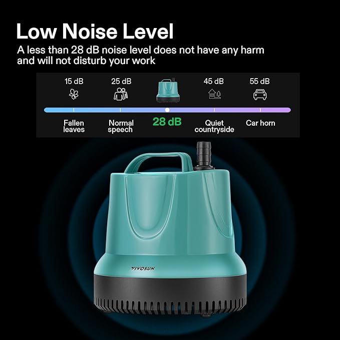 - Ultra-Quiet & Durable: Only making 28db sound, this pump is super quiet, so there is no trouble of getting disturbed while the pump is working; The pump’s ceramic shaft core uses a high-strength wear-resistant rotor that is both acid resistant and corrosion resistant