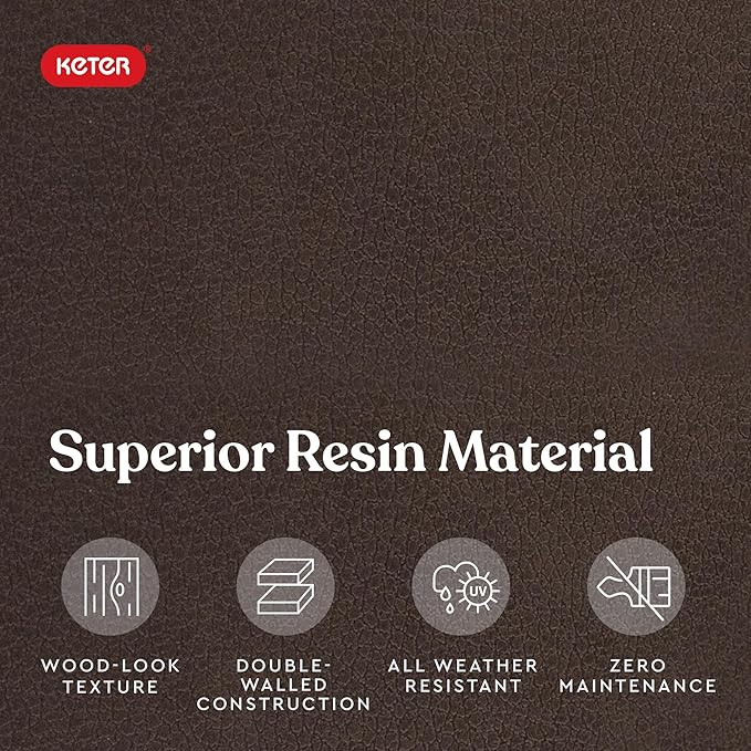 - RESIN CONSTRUCTION: It's made out of all weather-resistant resin with an appealing wood-look texture
