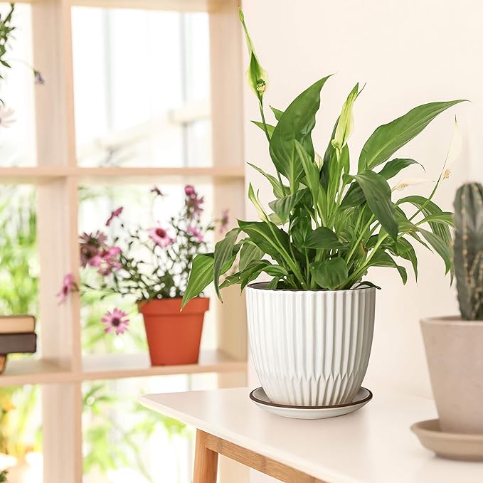 - Chic Design: Chic aesthetic to your home with ribbed pattern ceramic pot.