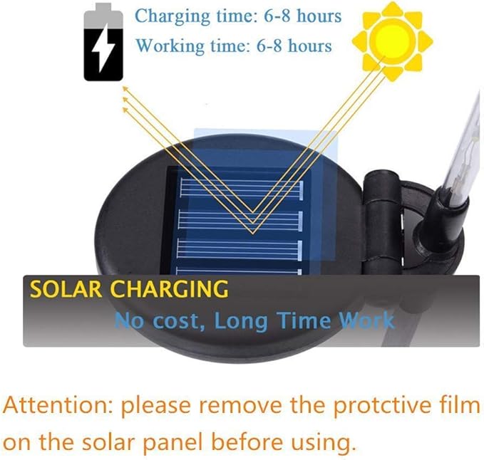 - SOLAR POWERED: This garden solar outdoor light used with a solar panel, powered by a solar battery charging system that supports 6 hours operations after fully charged. Auto Turn on/off