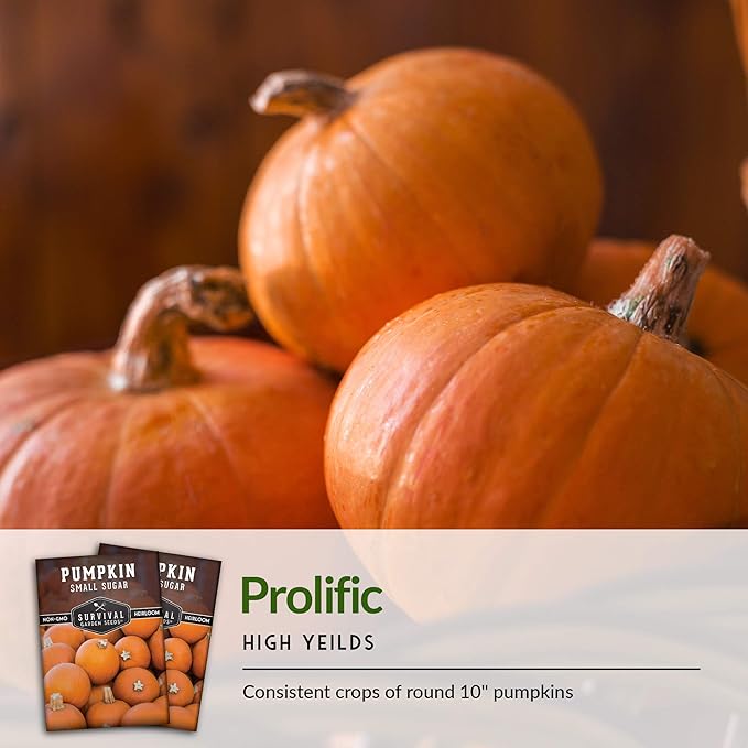 Survival Garden Seeds - Small Sugar Pumpkin Seeds for Planting – 1 Packet with Instructions to Grow Pie Pumpkins in Your Home Vegetable Garden – Non-GMO Heirloom Variety