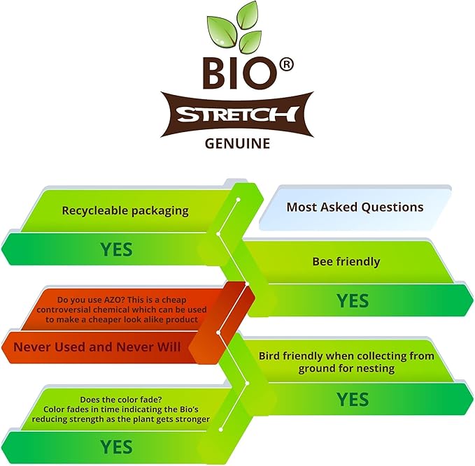 - NATURALLY DEGRADES - After 18-24 months of outdoor use, Biostretch plant ties start to naturally degrade and fall to the ground. Made from 95% natural materials, Biostretch is one of the most environmentally friendly garden plant ties on the market; simply collect any remaining remnants for a 100% organic garden or compost.