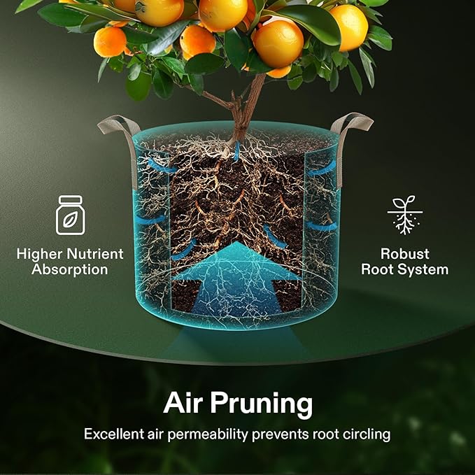 - Aerated Roots: The nonwoven fabric ensures that plant roots stay aerated and air-pruned inside the grow bag for healthier root structure.