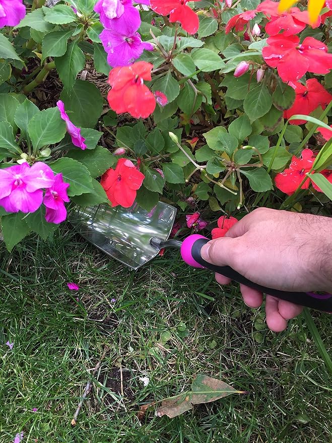 Garden Guru Super Strong Garden Trowel Hand Shovel - Stainless Steel - Rust Resistant - Ergonomic Grip - Perfect Tool for Gardening, Weeding, Transplanting and Digging in Garden Beds (Pink)