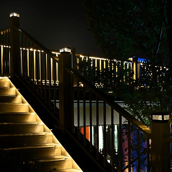 - 【Save Energy】Outdoor waterproof LED lights for fence posts charge in the sun for 4-6 hours during the day and automatically light up at night for 10+h continuous lighting.Solar-powered outdoor deck lights without wire save labor and power costs while being environmentally friendly