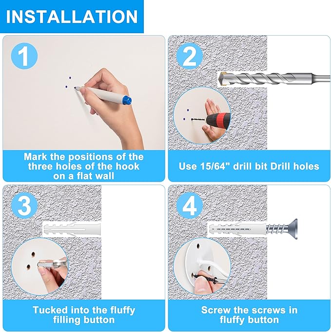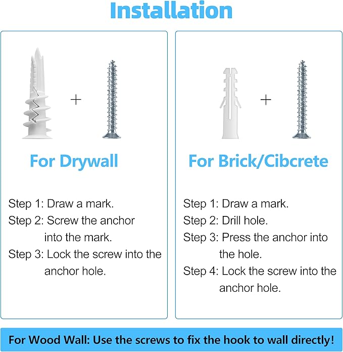 - LOADING WEIGHT --- The hooks can holds up around 50 pounds weight, Ensures stability and strength, suitable for interior and exterior use.