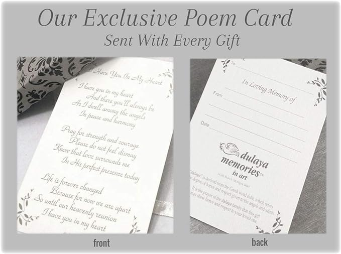 - CREATE A LASTING LOVING MEMORY: "Sending You An Angel" Poem Card Included Along With Dedication Card (see image) We know that finding the right condolences gift for loss can be challenging. We provide cost friendly sympathy gifts for loss of loved one, that’s just right to express your feelings. Includes a free condolence card. Arrives beautifully packaged for gift giving.