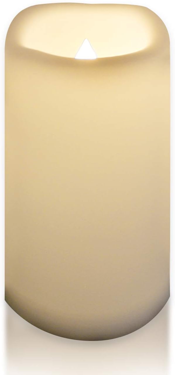 - Remote controlled. Use the remote control to turn on or off this LED flameless pillar candle from a distance up to 20 feet. Remote control is very useful when the plastic pillar candle is difficult to reach or placed in a short distance (less than 20 feet) from you, for example, when this flameless resin candle is put inside an outdoor lantern, on a high rack, a fireplace or a chandelier.