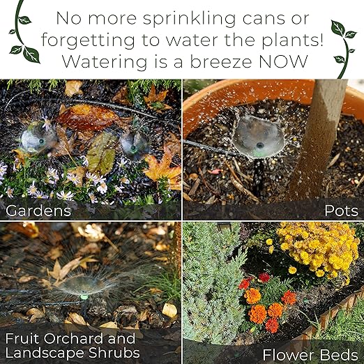 - Cut down your water bill - Minimize the amount of water loss by watering the roots of the plants with irrigation sprinkler heads. Adjust the water spray by rotating the cap and give your thirsty plants the amount of water they need. Our bubbler sprinkler heads can be used as irrigation drippers for potted plants, drip irrigation sprinklers for healthy vegetables, flower bed sprinkler for long-lasting roses, drip line sprinkler heads for fruit trees, or as irrigation drip system for the lawn
