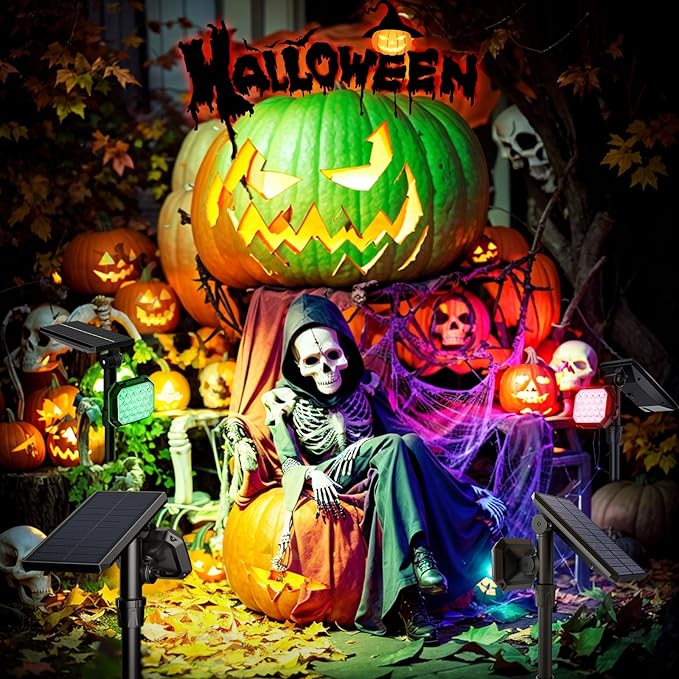 JSOT Solar Lights Outdoor Waterproof - Color Changing Spot Lights Outside, Solar Powered Spotlight Landscape Lighting Halloween Spotlights for Tree Garden Yard Pathway Driveway House Christmas