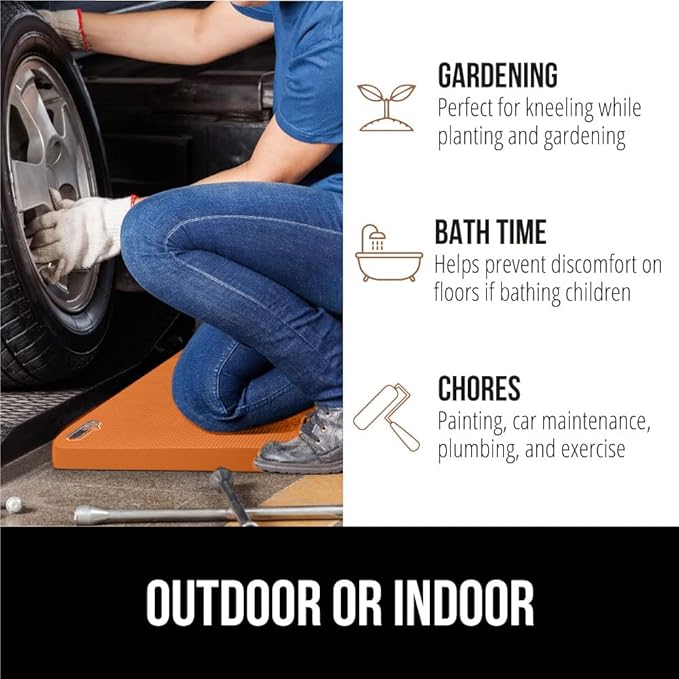 - GARDENING, PAINTING, EXERCISE AND MORE: the versatile design of the pad makes it a great option for multiple tasks and activities; ideal for gardening supplies, yoga and exercise workouts, bathing your baby and kids, sporting events, camping, everyday household chores, plumbing, painting and more; even makes great gifts; pad measures 17.5 by 11 inches
