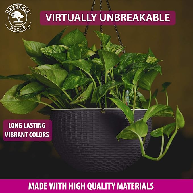 • While other plastic hanging baskets for plants look cheap and low-quality – a serious downgrade for your plant decor – our hanging plant pots are made of durable, top-quality polypropylene in fresh, clean white. Virtually unbreakable, our white planter hanging pot color is injected directly into the material, so it stays vibrant and true longer and won´t fade in direct sunlight. These durable white pot planter pots with drainage are great to use both indoors and outdoors!