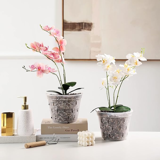- Clear Orchid Pots: Our orchid pot use transparent material makes it easy to observe the condition of the roots and let sunshine get to the roots to improve well-being of a plant.