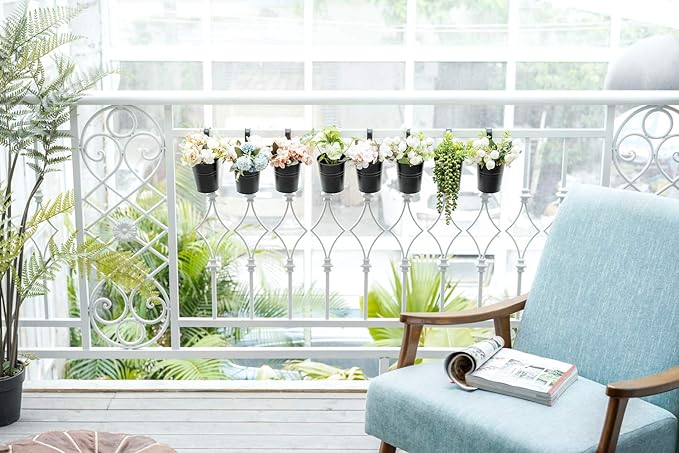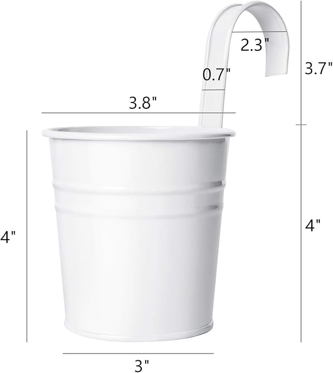 - These special metal bucket pot with an attached hook,can be hung on the railing, balcony, window, anti-theft net, trellis,fence,indoor or outdoor anywhere,also can be used as desktop.