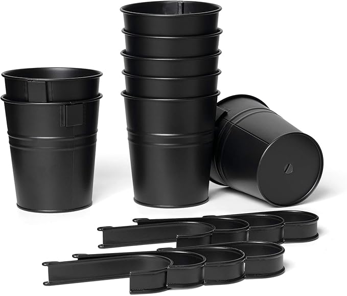 Dahey 10 Pcs Hanging Flower Pots Metal Iron Bucket Planter for Railing Fence Balcony Garden Home Decoration Flower Holders with Detachable Hooks, Black, 4 Inches