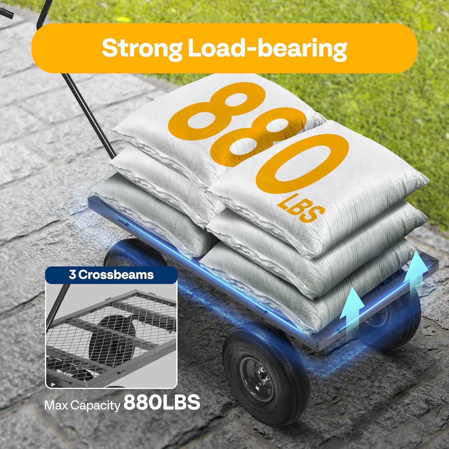 - POWERFUL LOAD AND LARGE CAPACITY - VIVOHOME's multi-functional garden cart has meticulous workmanship and strong design sense; Its maximum load can reach 880 lbs., which is more than twice that of competitors; there's nothing you cannot pull away with this practical and convenient cart (to prolong its life, long-term heavy loading is not recommended)