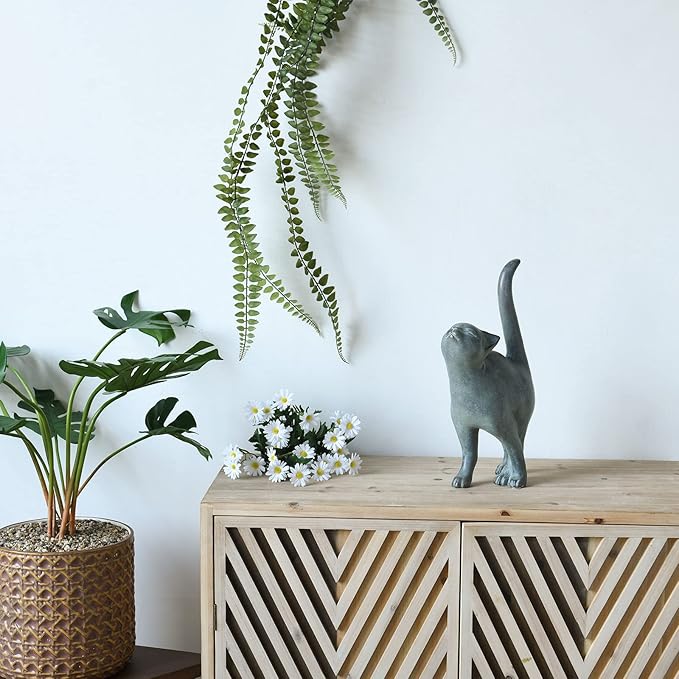 Newman House Studio Garden-Statues Cat-Figurines Home Garden Decor - Farmhouse Backyard Polyresin Kitten 7.6L x 4W x 14.5H inch