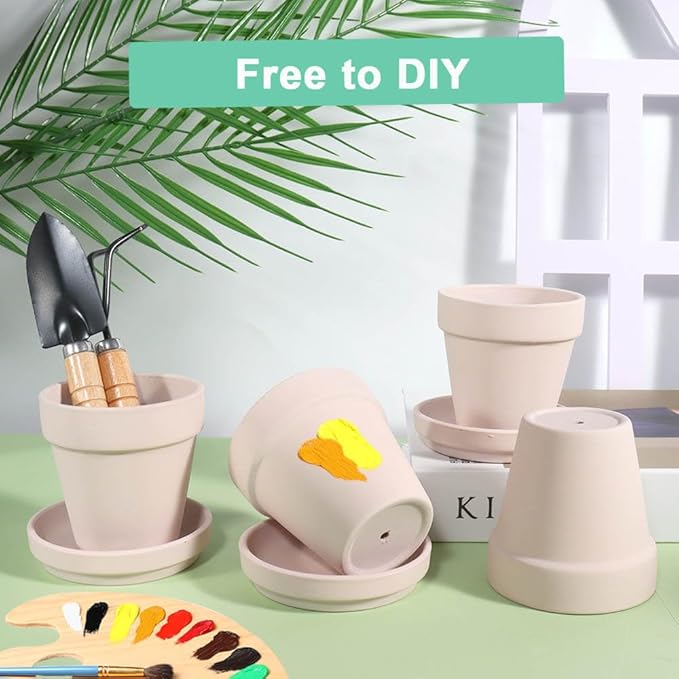 - 【Ideal for Indoor or Outdoor Usage】The terra cotta pots are included Saucer, so you can put them at your balcony, windowsill, table or working desk.