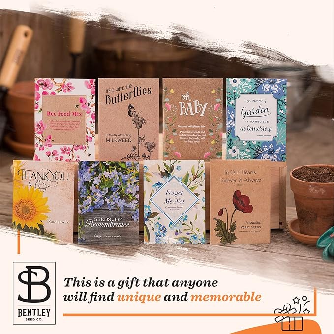 - GROW GOOD THINGS: At Bentley Seeds, we pride ourselves on providing consistent and high-quality flower seeds. Bentley Seed Co. offers multiple packet sizes, paper choices, and many seed varieties to accommodate any event. All of our favor packets comply with USDA and all 50 States Dept. of Agriculture guidelines. Packet size: 3 ¼" x 4 ½".