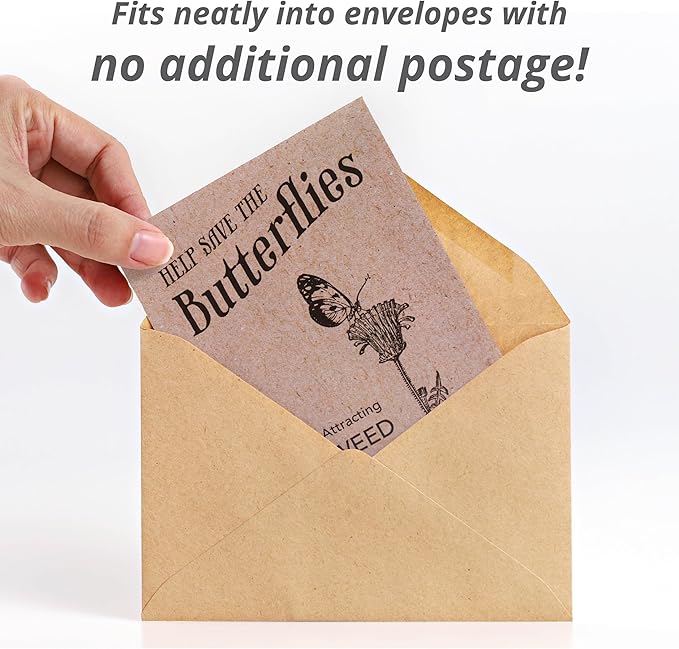 - ENVIRONMENTALLY FRIENDLY GIFT OR FAVOR: Our packet has a natural kraft-look and a simple etched design of a butterfly enjoying milkweed plants. Use it as a favor at an event or as a conscientious promotion for your business!