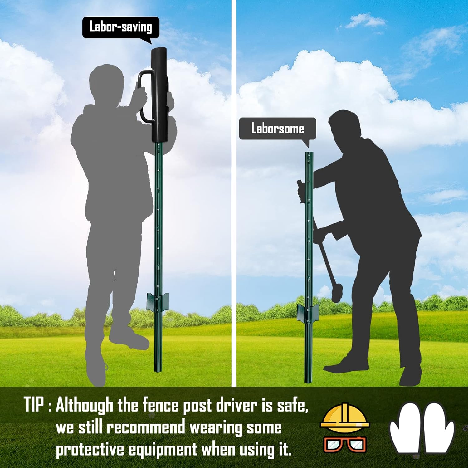 - 【A GREAT HEAVY DUTY TOOL】This high-quality fence post driver makes it easy for you to drive wooden fence posts deep into the ground. It is a great tool to designed to drive t-post, wood, metal or any type of fence posts