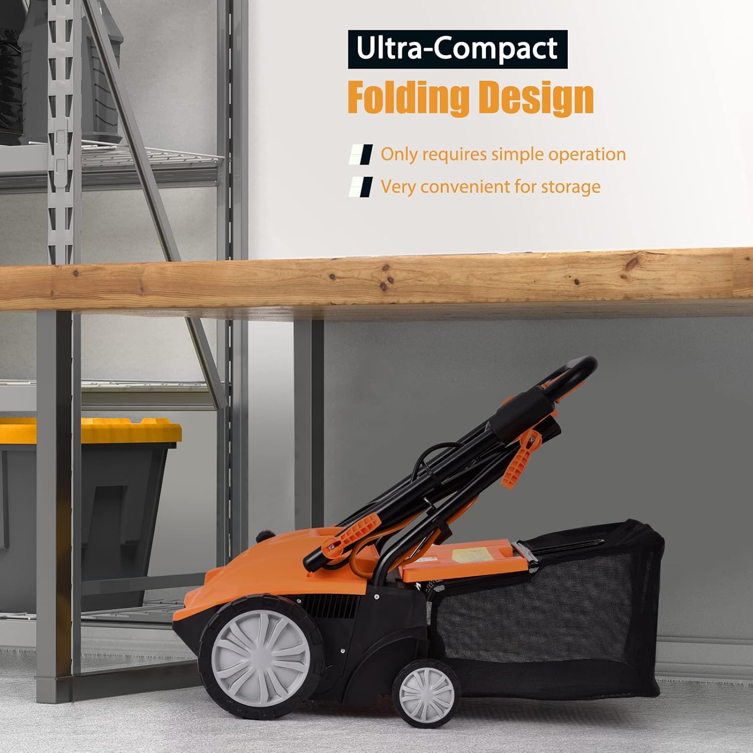 - 【2-In-1 Dethatcher & Scarifier】The powerful 12-amp motor rakes 13” wide to effectively solve the problems of trimming and scarifying. In addition, a 11 gallon grass collection bag can gather the lawn debris automatically to save your time and energy.