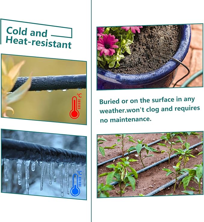- 【HIGH QUALITY MATERIAL】The Irrigation Tubing is made of PVC material, very soft,leak-proof,UV resistance.Cold and heat-resistant,buried or on the surface in any weather.won't clog and requires no maintenance