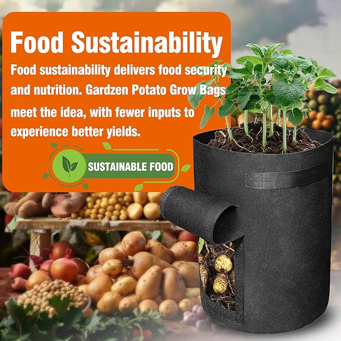 - Premium Quality - Gardzen Potato Grow Bags are made from 300gsm thickened nonwoven fabric material, ensuring durability and long-lasting use. Can be reused for severl seasons.