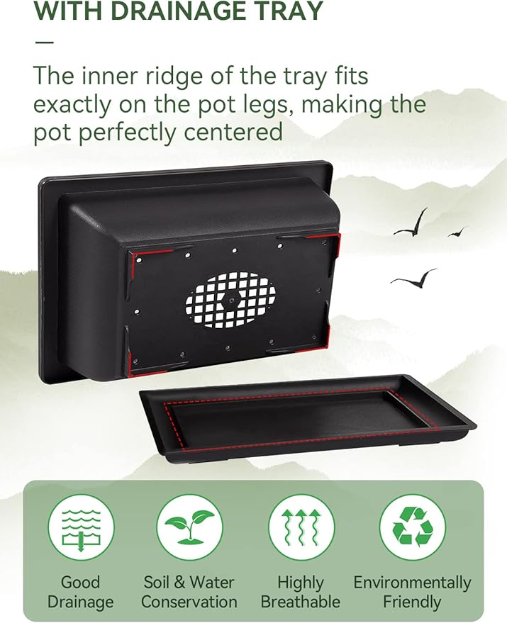 - Drainage Design: Our bonsai training pots have built-in multiple water seepage holes to provide breathability for plant growth and facilitate drainage. The attached tray can store the water drained from the flower pot. There are quite a few places at the bottom for draining to keep your area clean.
