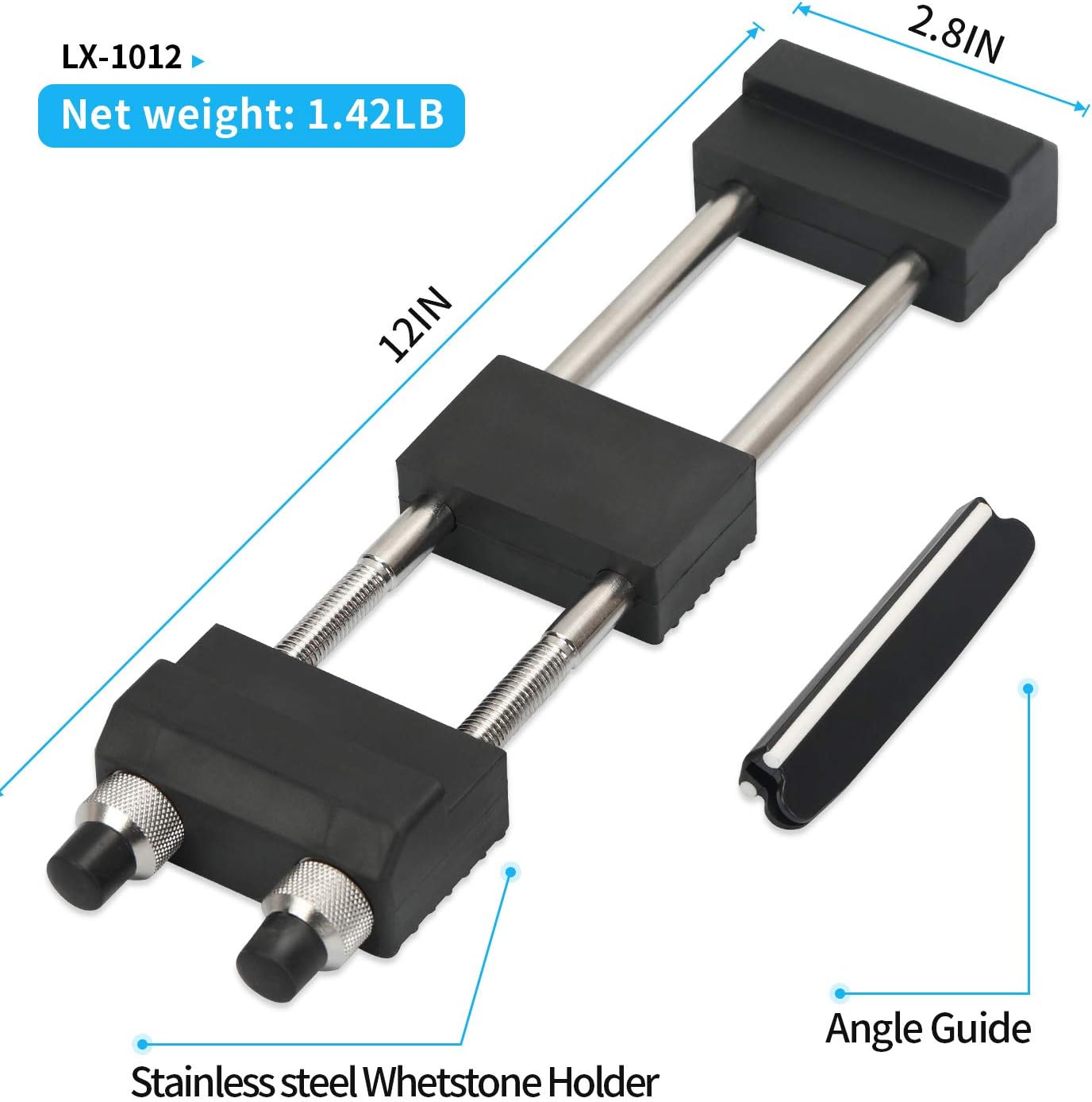 - Adjustable design, end of the sharpening stone holder is fixed with 2 screws, grindstone is not easy to loosen