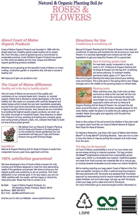 Coast of Maine Roses and Flowers (20qt) Organic and Natural Planting Soil for Roses, Annual and Perennial Flowers