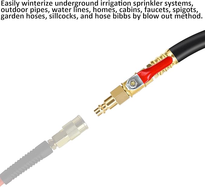 - A WIDE RANGE OF APPLICATION IN SPECIFIC WINTERIZING WORKS - This blowout adapter winterizing kit provides a healthy and environmentally friendly method to avoid expensive damage caused by freezing in cold winter. Together with the male garden hose end, this kit is typically used to winterize RV, camper, boat, watercraft, and travel trailer. With the female garden hose connector, it is used to winterize sprinkler systems, drip irrigation systems, spigot, faucet and outdoor plumbing.