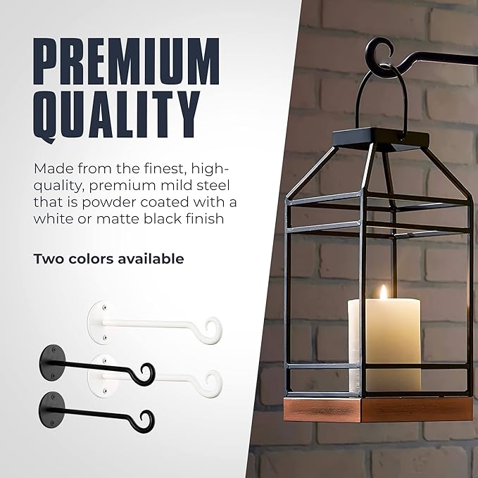 Monarch Abode Wall Mount Plant Hook Premium Metal Decorative Hanging Bracket for Plants Bird Feeders Planters Home Decor, Heavy Duty, 7.5 inch, Set of 2, White