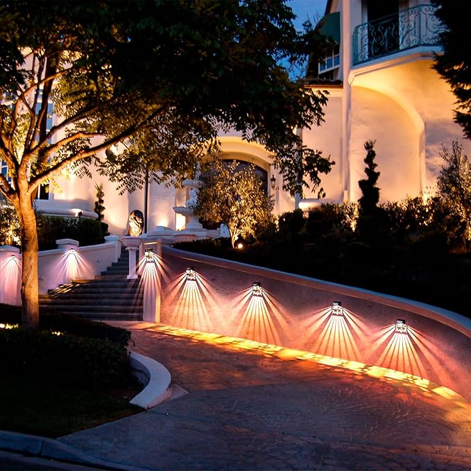 - 【𝐃𝐞𝐜𝐨𝐫𝐚𝐭𝐢𝐯𝐞 𝐒𝐨𝐥𝐚𝐫 𝐅𝐞𝐧𝐜𝐞 𝐋𝐢𝐠𝐡𝐭𝐬】- LOFTEK warm white solar fence lights adopts advanced LED chips and all side Hollowed-out visible lampshade design provides brighter lighting and a wider detection range. It cast a pretty flower pattern that looks gorgeous and adds a nice aesthetic to your garden backyard. 26 lumens brightness is eyes protection and energy-saving than general fence lights. With our solar outdoor lights, you will get many compliments from neighbors. Suitable for Christmas decoration.
