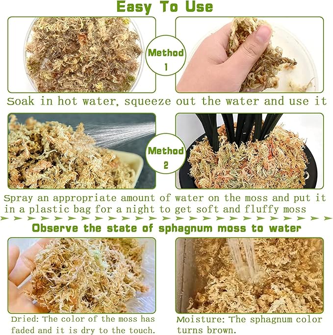 - Wide Application: You can use these orchid moss as nutritional succulent soil for plants, fern, venus flytrap plants, carnivorous plants, also as layering decoration for succulents, or use as egg-laying and incubation medium, substrate for reptile or amphibians terrariums