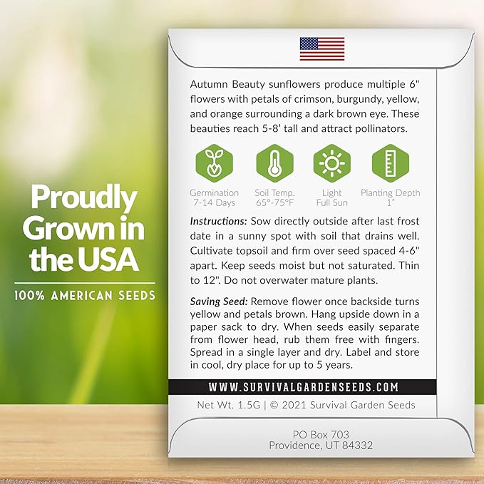 Survival Garden Seeds - Autumn Beauty Sunflower Seed for Planting - Packet with Instructions to Plant and Grow Beautiful and Colorful Flowers in Your Home Vegetable Garden - Non-GMO Heirloom Variety