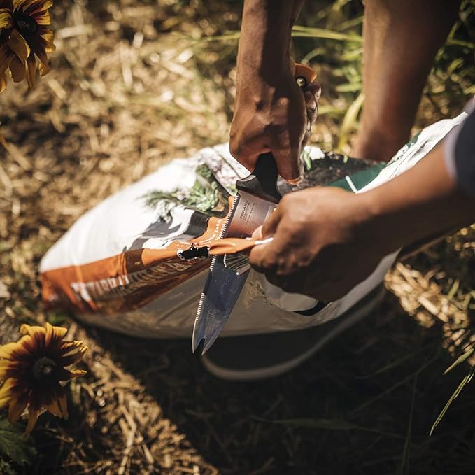 - MAXIMUM POWER AND PRECISION: Dual-edged knife with precision-ground edge designed for multi-purpose cutting; Serrated blade edge for sawing through thick growth; Forked tip for efficient weeding; Easy-to-read measurements help determine plant depth; SoftGrip handle boosts comfort and reduces fatigue