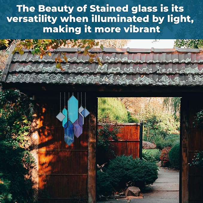 - ๐ฏ Genuine Stained Glass Suncatcher: Crafted from real stained glass in a captivating Azure Blue design, this translucent window hanging is ideal for brightening up any space. Great for window decor, suncatchers, and glass art pieces for your home.
