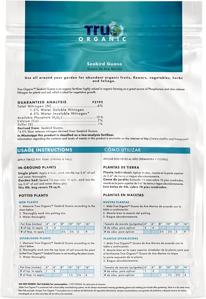 True Organic Seabird Guano – Organic Fertilizer for Abundant Fruits, Flowers, Vegetables, and Foliage – 4lb Bag Covers 70 Sq. Ft.