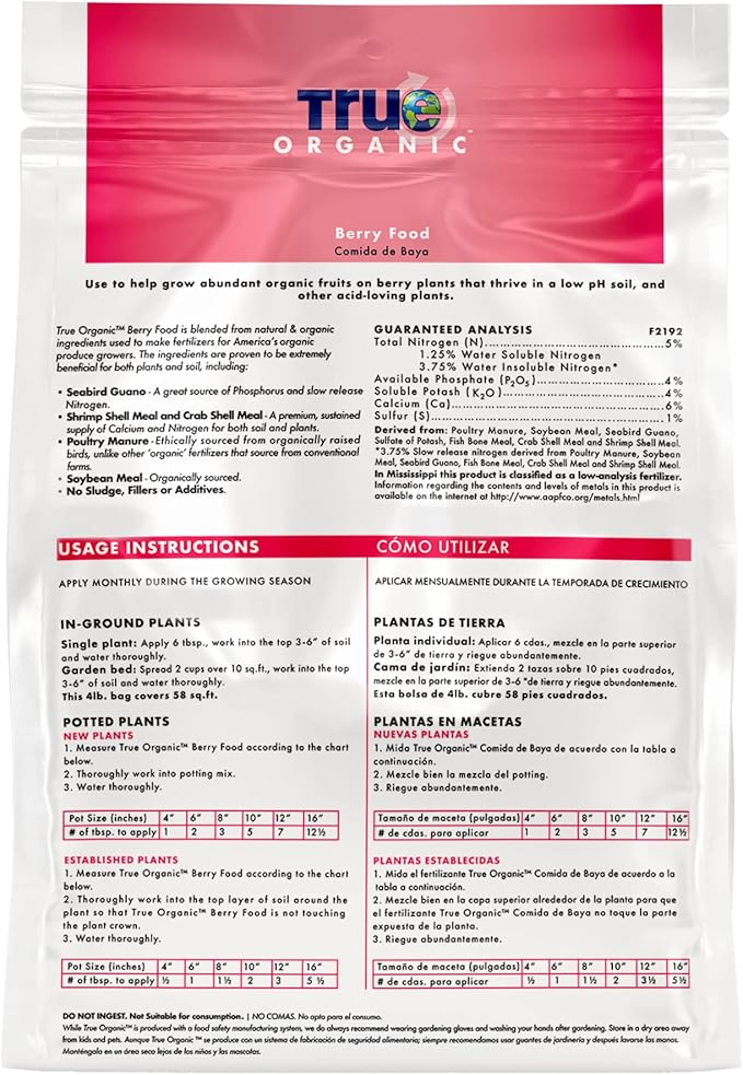 - Promotes Abundant Berry Harvests: True Organic Berry Food supports the growth of juicy, organic fruits on berry plants and other acid-loving plants.
