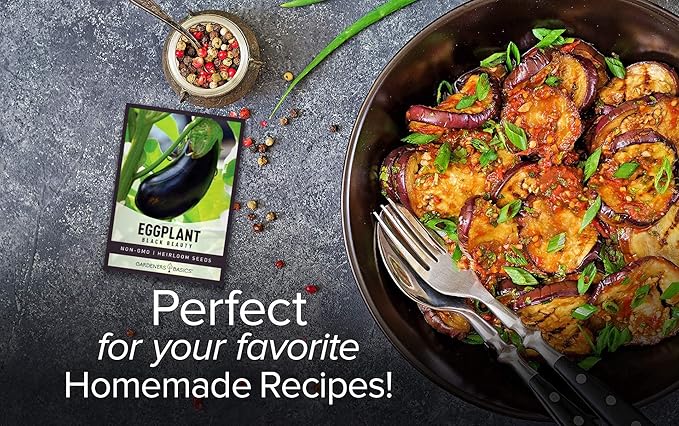 Gardeners Basics, Eggplant Seeds for Planting - Black Beauty Solanum melongena is A Great Heirloom, Non-GMO Vegetable Variety- 300 mg Seeds Great for Outdoor Spring, Winter and Fall Gardening