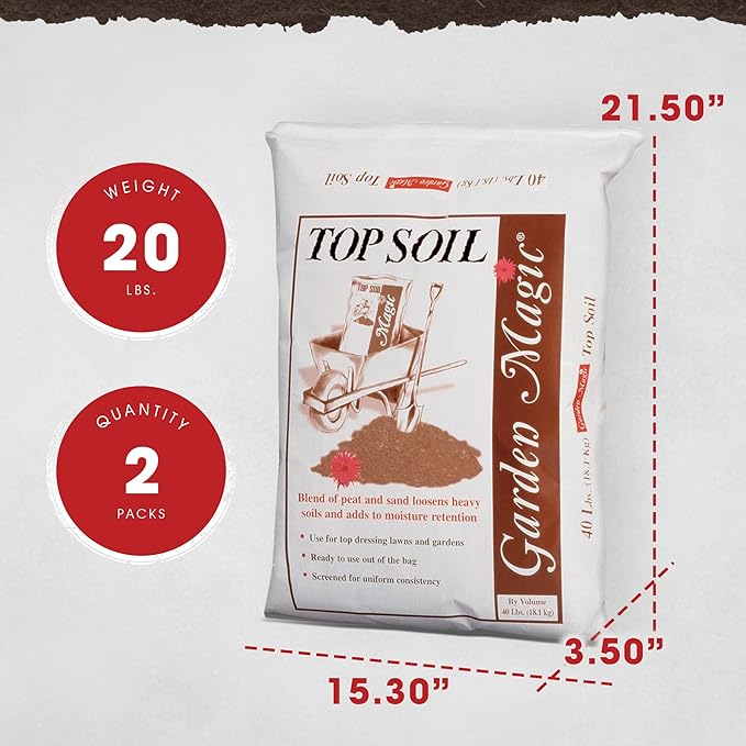 Garden Magic All Purpose Potting Soil for Lawns, Gardens, and Raised Planting Beds with Reed Sedge, Peat, and Sand, 20 Pounds (2 Pack)